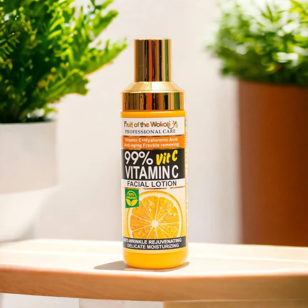 Fruit Of The Wokali 99% Vitamin C Facial Lotion is formulated with vitamin C to heal and smooth roughness , providing a rejuvenated appearance to the skin.