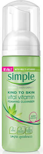Simple Kind To Skin Vital Vitamin Foaming Cleanser is a cleanser that removes impurities and traces of make-up. A blend of multi-vitamins and skin-loving ingredients remove impurities and traces of make-up leaving you feeling fresh-faced and ready for your next skincare step.